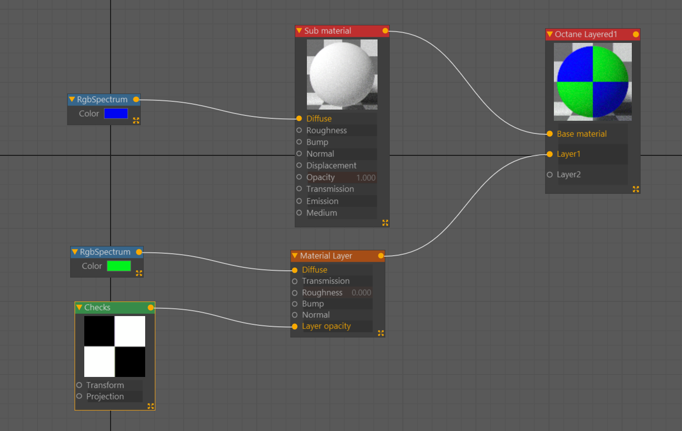3. Create a Material Layer. Pipe in the RGBSpectrum node into the Diffuse port of the Material Layer.