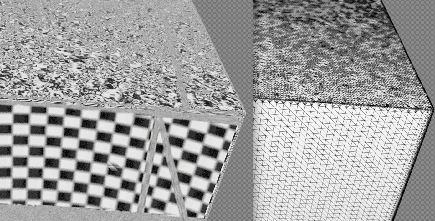Has anyone had to deal with this weird glitch when rendering specular surfaces in Octane? For some reason, a flat poly surface appears buckled, but this happens only for some camera angles. Move the camera slightly and the glitch fades away. This issue doesn't repro in other renderers I've tried, so I know it's not a geometry issue.