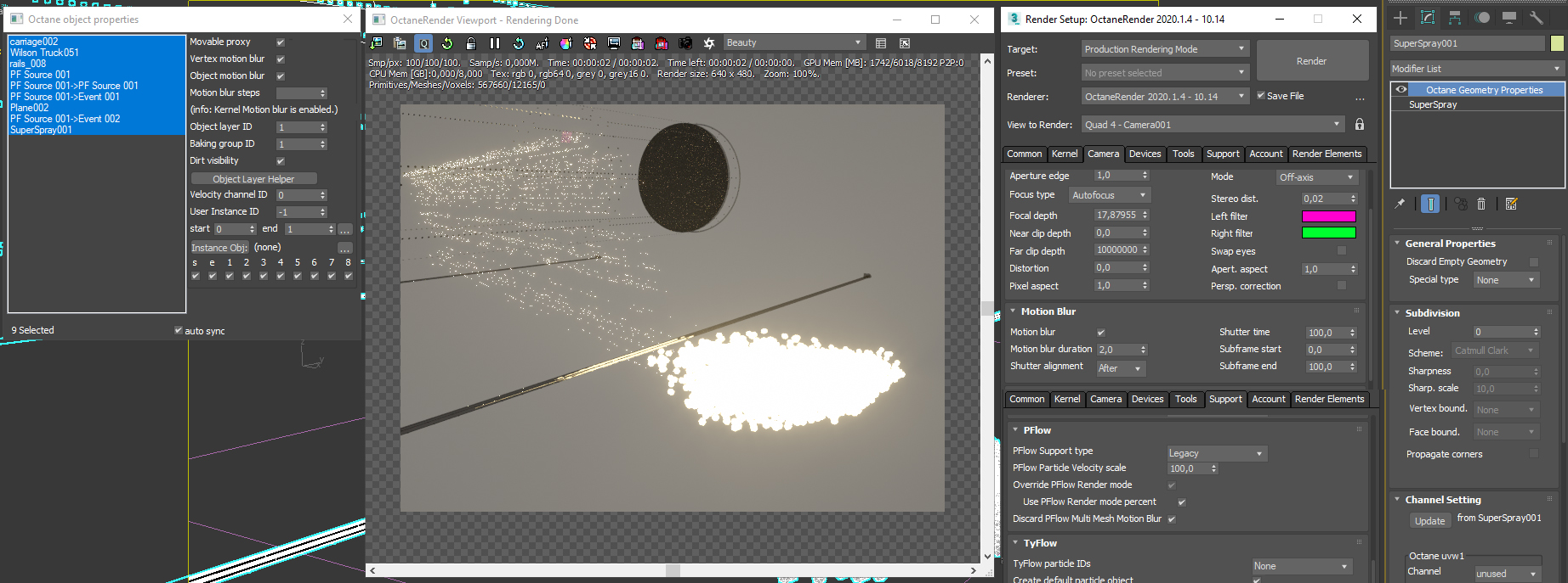 The third problem if you create superspray and enable mb and movable proxy and then add octane modifier (with extended geometry support) all the sudden particles won't render anymore. You have to uncheck mb and movable proxy and then recheck to fix it. I attached the video