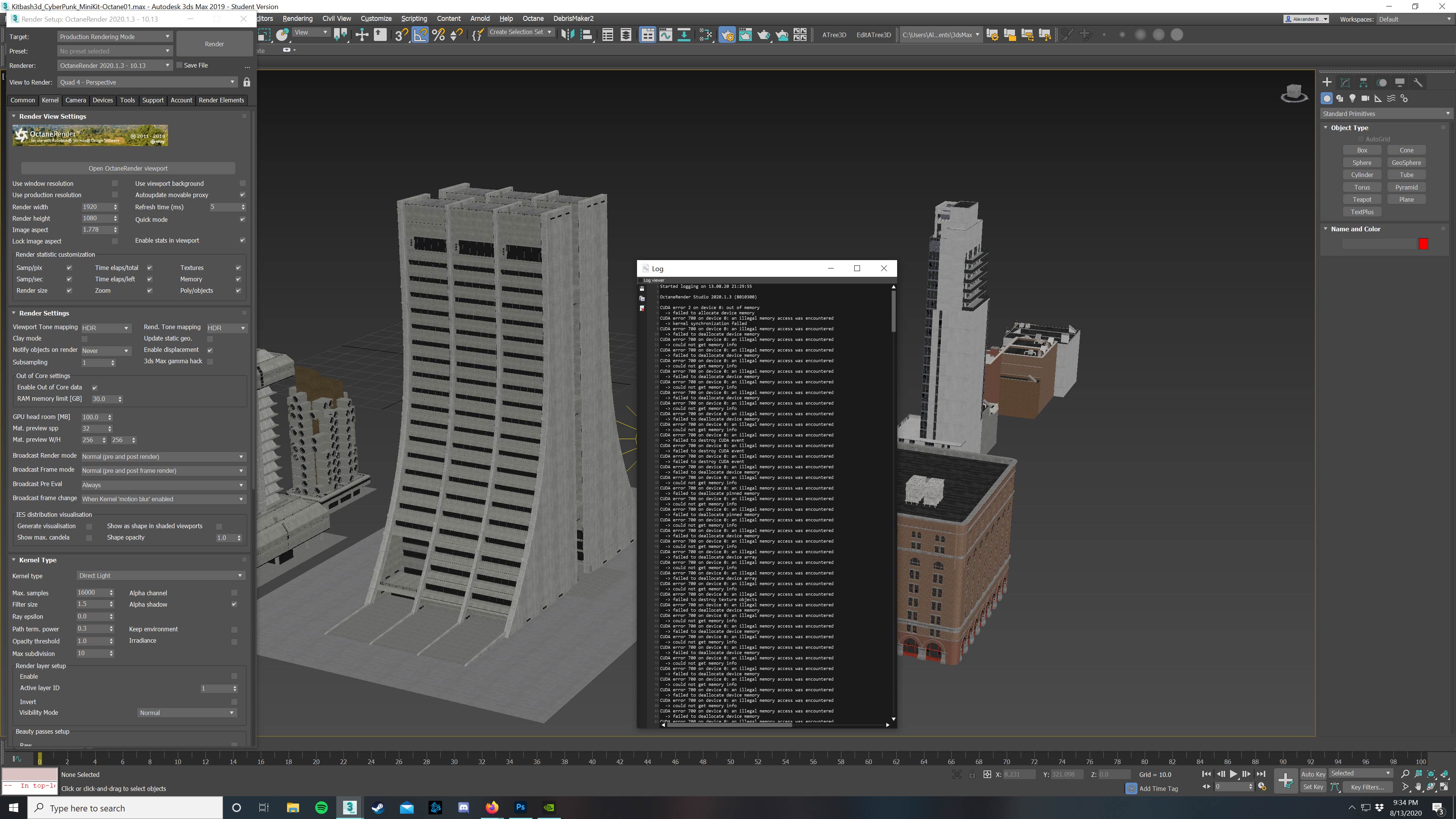 Whats strange is my device memory fills up and I can't get the Octane viewport to open again without restarting 3D Studio Max. I'm running GeForce Game Ready Driver Version 451.67.