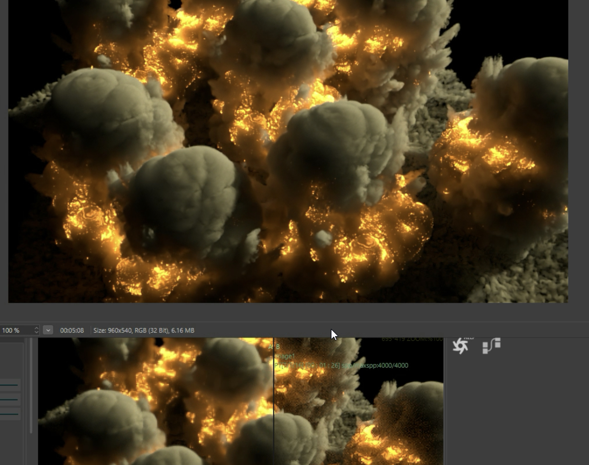 AI Upsampling is designed to obtain fast previews, especially with animations, with an increment of 4x in speed with 2x2 Upsampling, and 8x with 4x4 Upsampling.