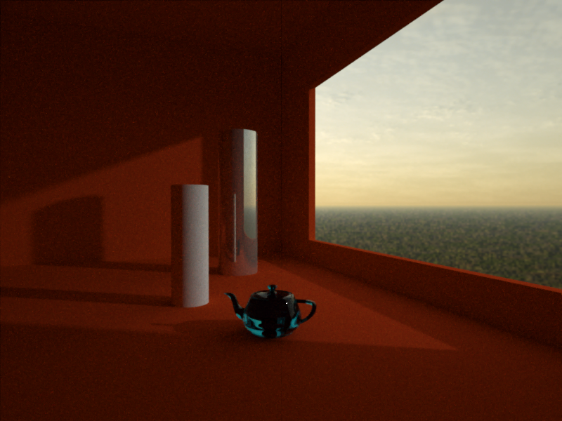 I reallised that glas + emitters = caustics, so I did this room and a little sphere out simulating the sun and I found this curious, maybe technically curious results.
