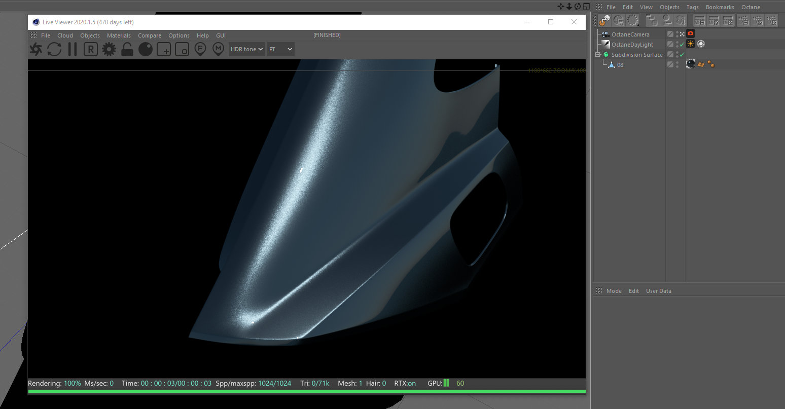 Maybe someone at Otoy could take a look at the OSL script help find a more fool proof way of procedurally applying the texture. I think though in the long term Octane should have have an advanced procedural flake shader built into the core that does not require any UVs to work properly. This combined with the new layered materials would be perfect.