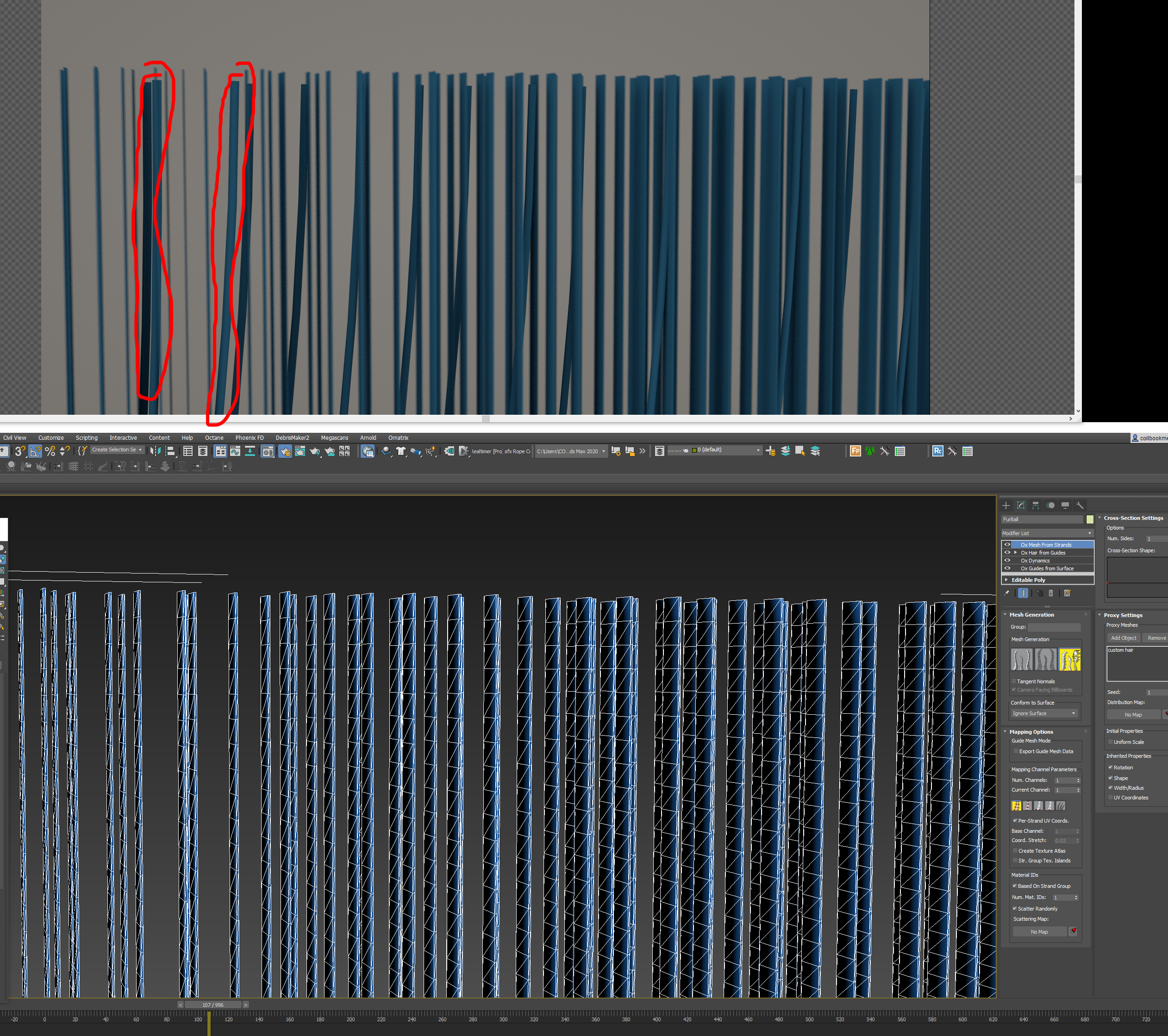 The hair guides are rendered only if some of the other ornatrix are disabled, no other modifier exist.