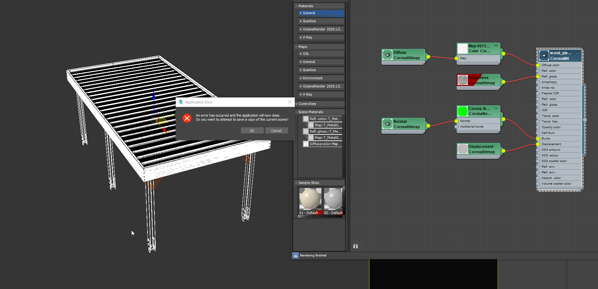 I had not crashes with Corona material converter on-the-fly, but you have not attached the textures and hdri, so my testing your file cannot quite convincing to me.