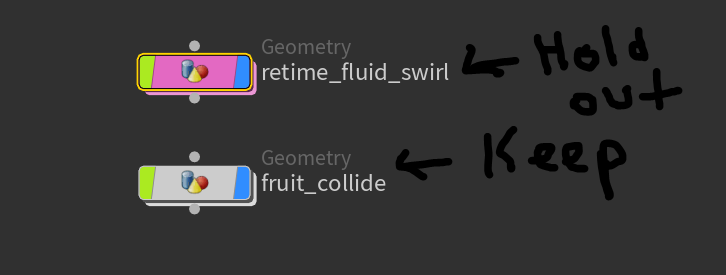 I want to hold the water out or matte it or whatever its called in Octane, from the fruits. So the result is the water cut out of the fruit layer. So I can comp the water OVER the fruit and it will look correct. In Mantra you just put the object to cut out into the "Forced Matte" slot and it just works. Very simple and intuitive. Why not that workflow in Octane? Thanks in advance.
