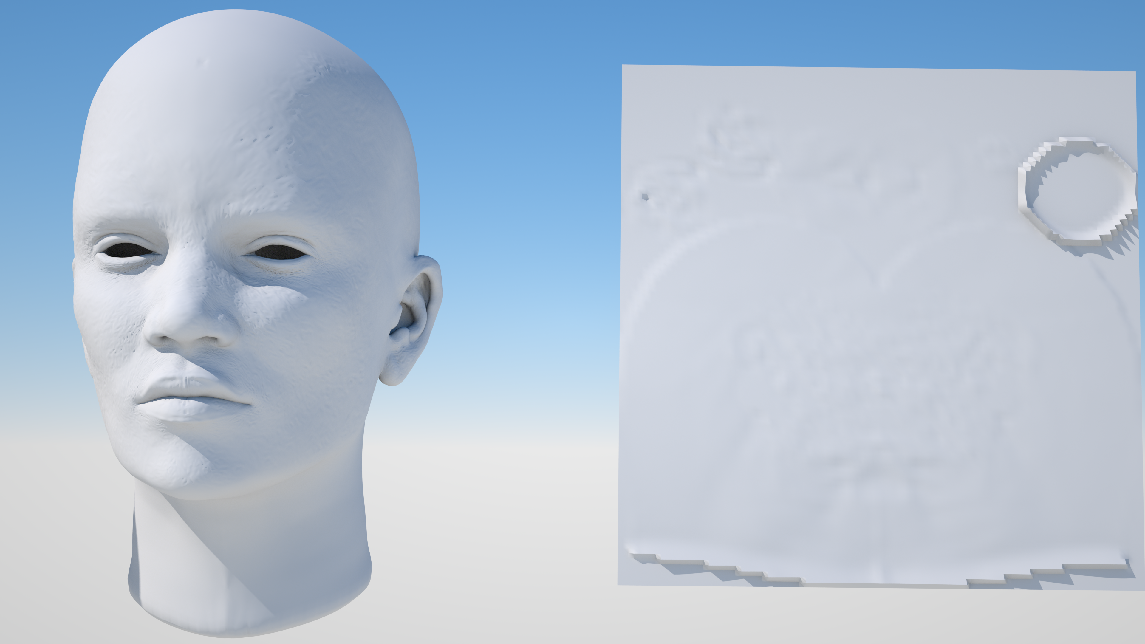 ]There is something wrong with Vertex Displacement and autobump. It works on some models and not on others. In the first attached image you can see the problem. It doesn't work on the head but it works just fine on a plane. You can see the same thing on the third image, works on the left model but not the right one. They don't have the same uvs but that doesn't really matter. They were both exported the same way from ZBrush. Thought something was wrong with the model but i tested it in Arnold and Redshift and it works just fine there.