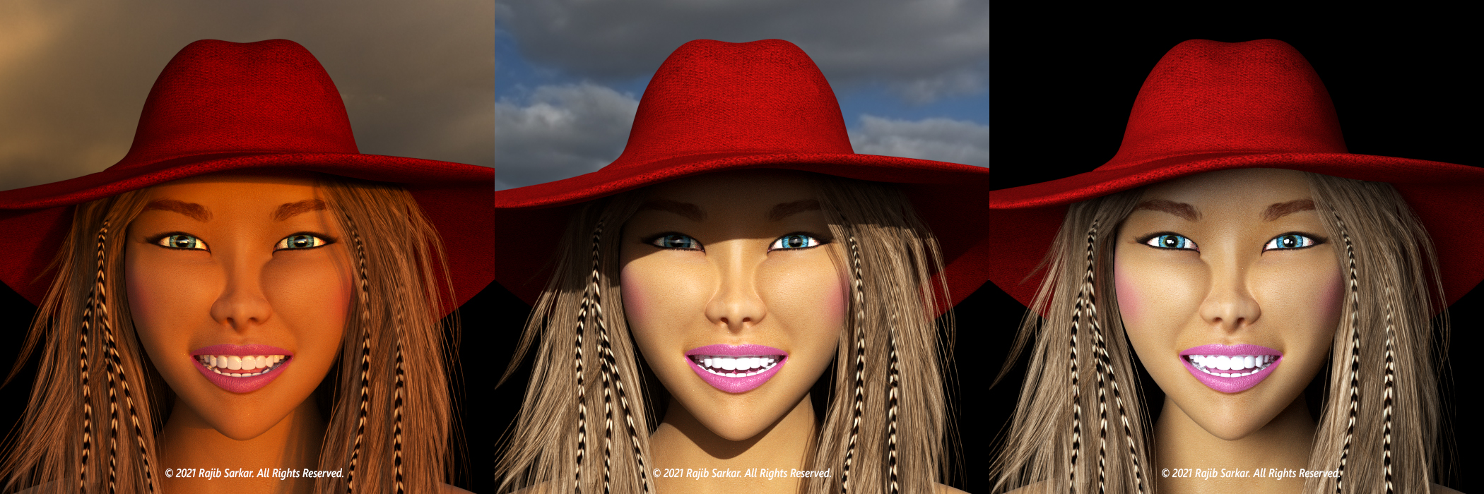 Here is how my character Miho's teeth and gum looks in different lighting : Part of my trick is to add a invisible reflector (a simple rectangle) just in front of the teeth. I anchor this to the Lower Jaw of the character so that is always stays in place while I pose the character / change expression. Just turn off the Octane Camera Visibility and Shadow Visibility The Teeth Reflector is a simple Diffuse material. You can control the amount of light reflected back into the teeth by changing the Diffuse value. The Teeth Material is also very simple. It is basically a pure white glossy material with a specular layer added to add some reflection and with Bump set to break the highlights. I don't really use the teeth material texture. You can use it though. Just pass it through a Color Correction Node to increase the texture's overall brightness. For the gum material, use the skin shader for the torso material or anything else that has SSS and replace the torso textures with the mouth textures. With SSS it should look good.