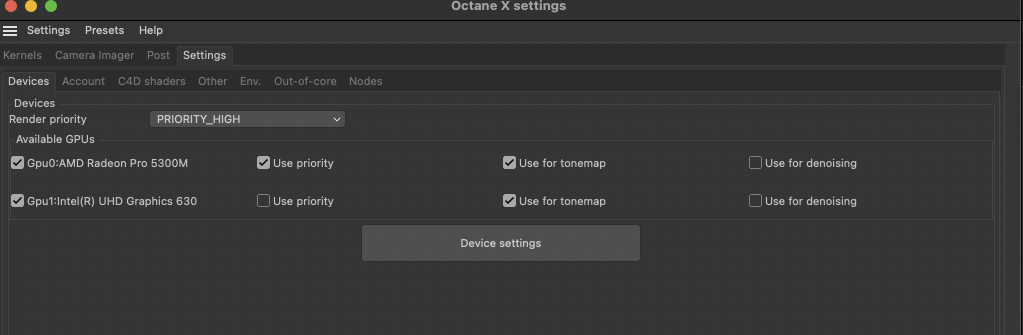 Confirmed at least for me.. it persists even after restarting C4d or even Logging out and logging in again into Macos - But.. it reverts to having the intel one selected...if i Reboot the whole machine. NOTE that i'm on Macos 11.1 with "automatic Graphics switching" Disabled - Macbookpro 2019 16 inch. AMD Radeon Pro 5300m