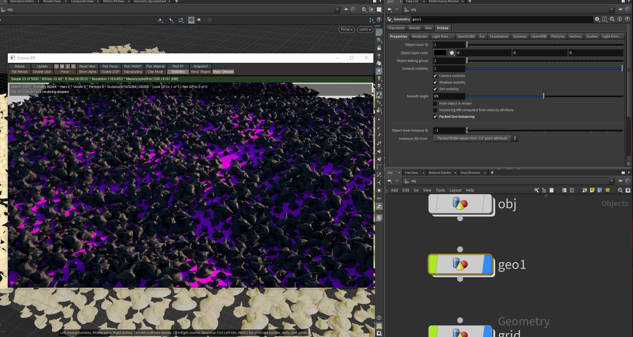 juanjgon wrote:Hmm, but your OBJ node didn't have the option to instance the packed geo, probably because it comes from an older plugin version. Once added and enabled, everything works as expected.