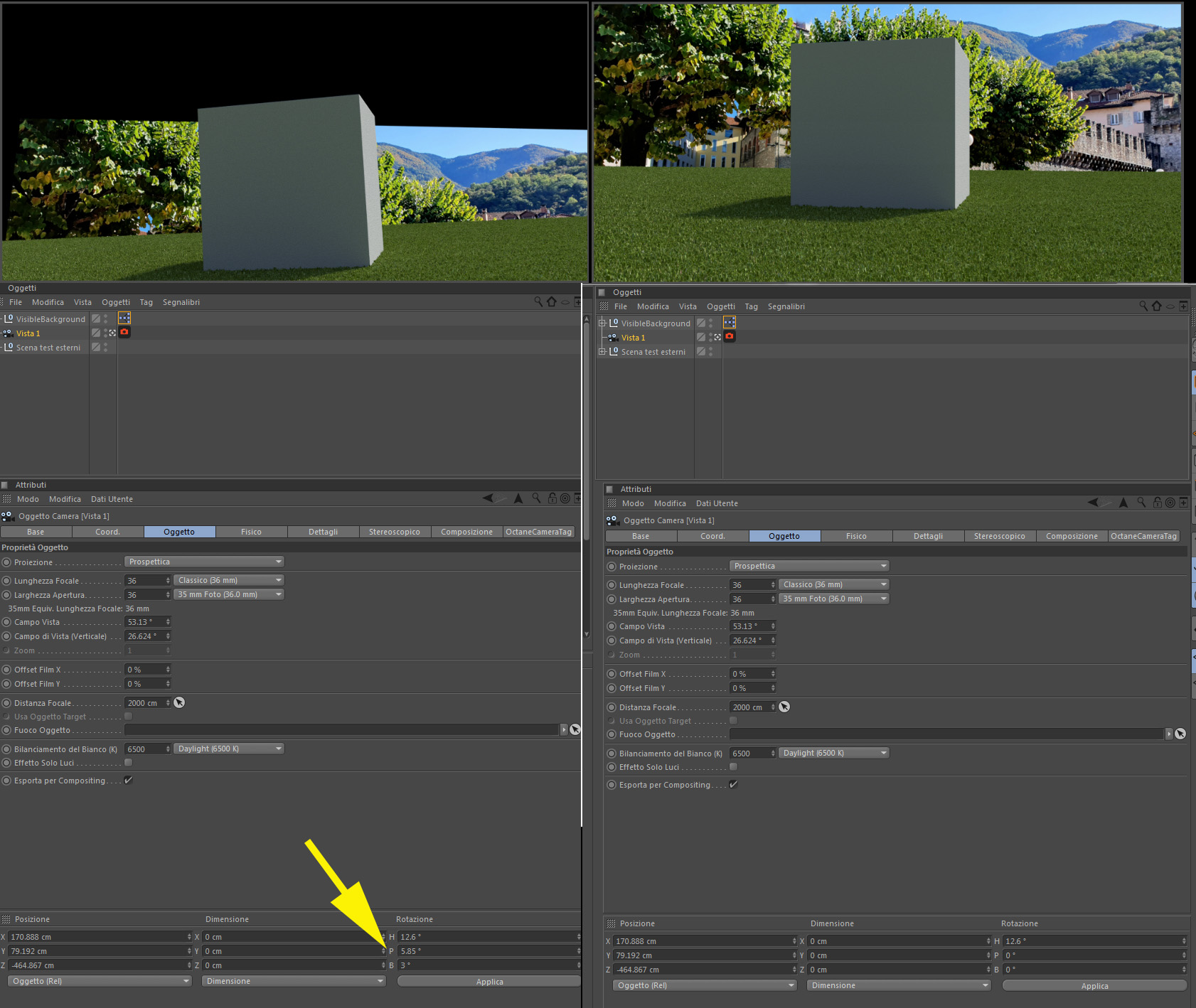 Please check if you see the problem rotating the camera angle "P" to +5° (positive).