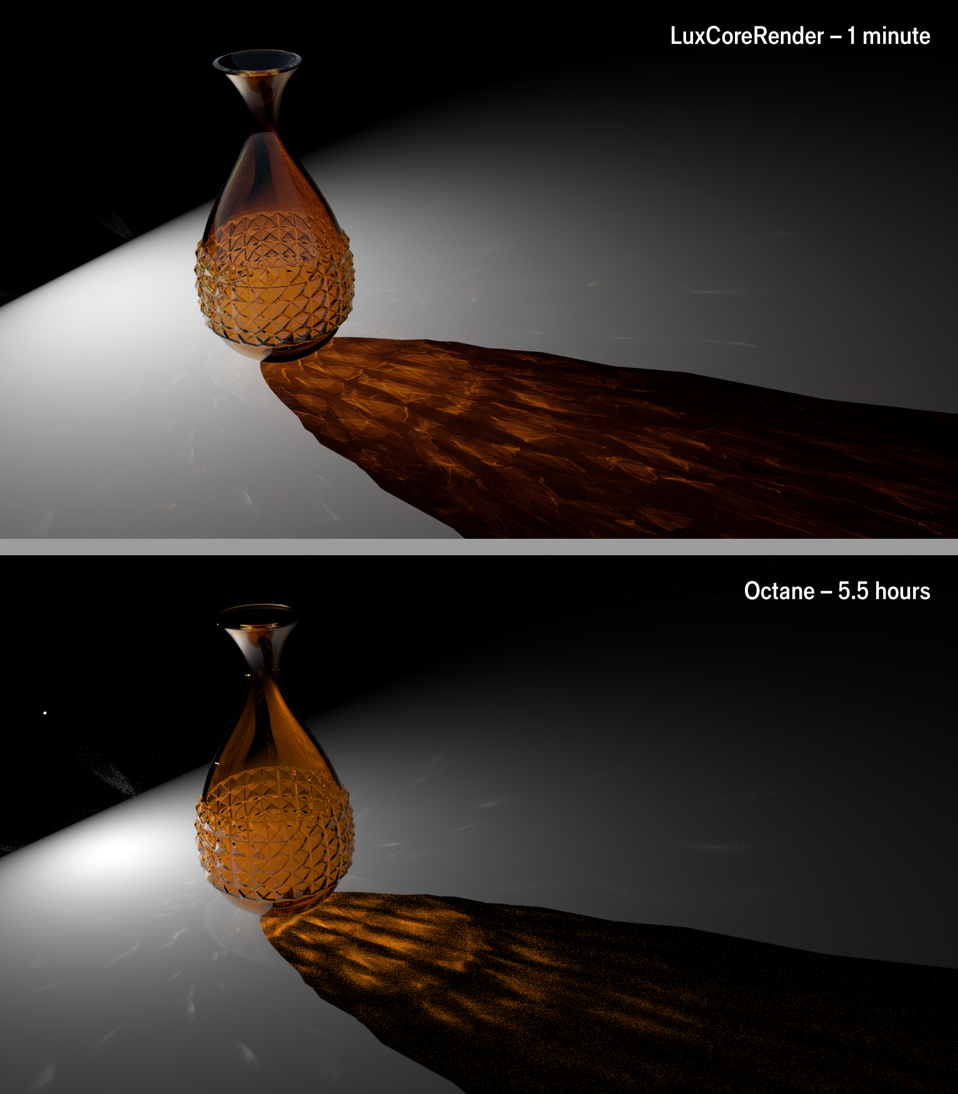 I know new caustics capabilities are on the roadmap, but I want to pop on and say I'd LOVE to see whatever voodoo LuxCoreRender is using implemented into Octane. Their caustics converge almost instantly without fiddling with a bunch of different settings or battling fireflies: