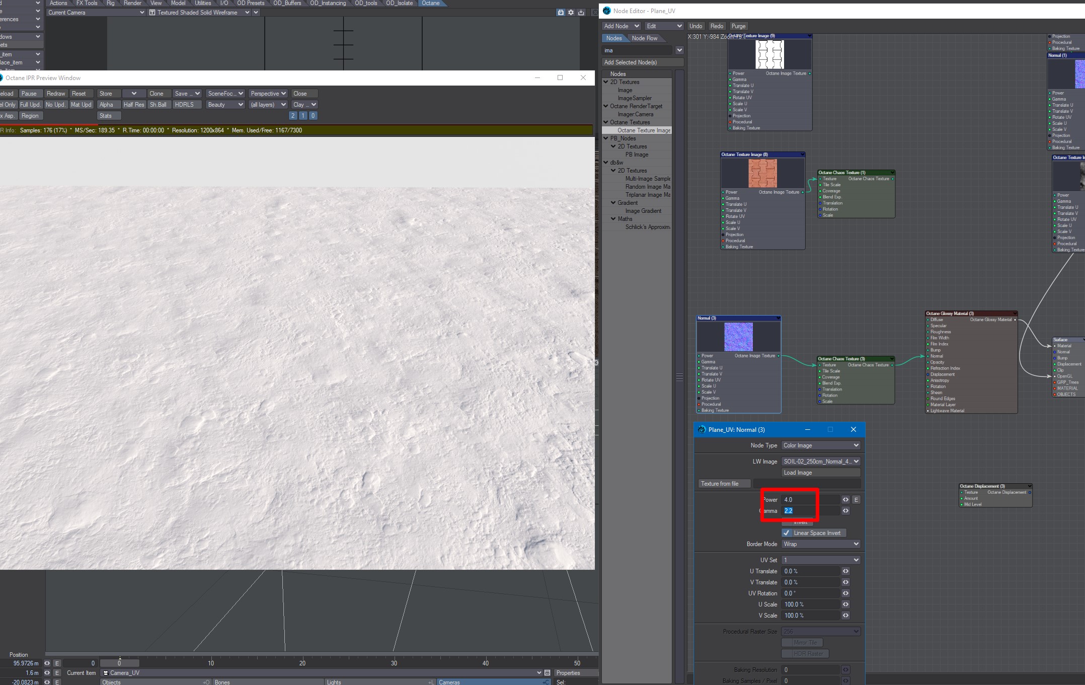 With Chaos, changing power totally changes shading and brightness of the material: