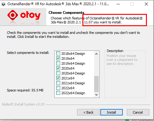 I cannot see this window, how do I run the installer to see it?paride4331 wrote:Hi,46165957 wrote:The installer was downloaded on 01-04-2021. Defined by 3ds max 2021. It is also installed. 3ds max 2022 (also installed) is not in the list.anifex3D wrote:This version of Octane for 3ds Max 2022 installs fine. You need to make sure you check the check box next to 2022 on the installer list as it is not checked by default like the previous versions of 3ds Max that may be installed already.
