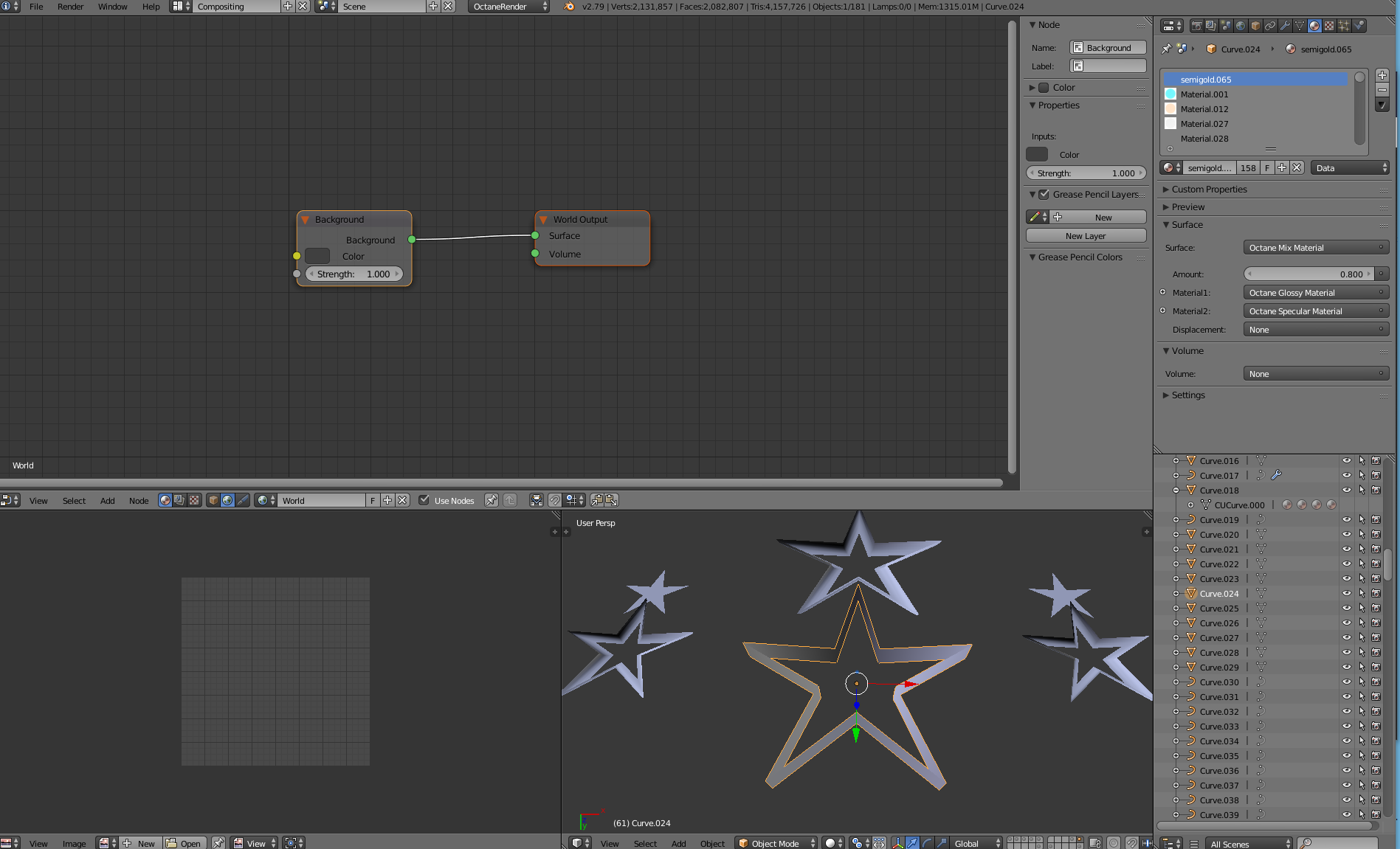 The objects' Octane Materials look fine in the render, but I can't see or edit them in the editor. (The selected Objects are converted to mesh from curves, if that makes a difference...)