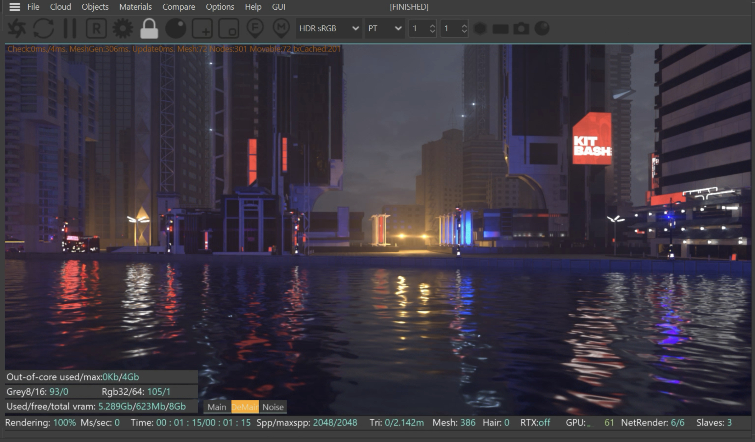 I do have a quick question. When rendering on the main workstation, it takes about 2:00 per frame (single 2080ti.)bepeg4d wrote:Hi,