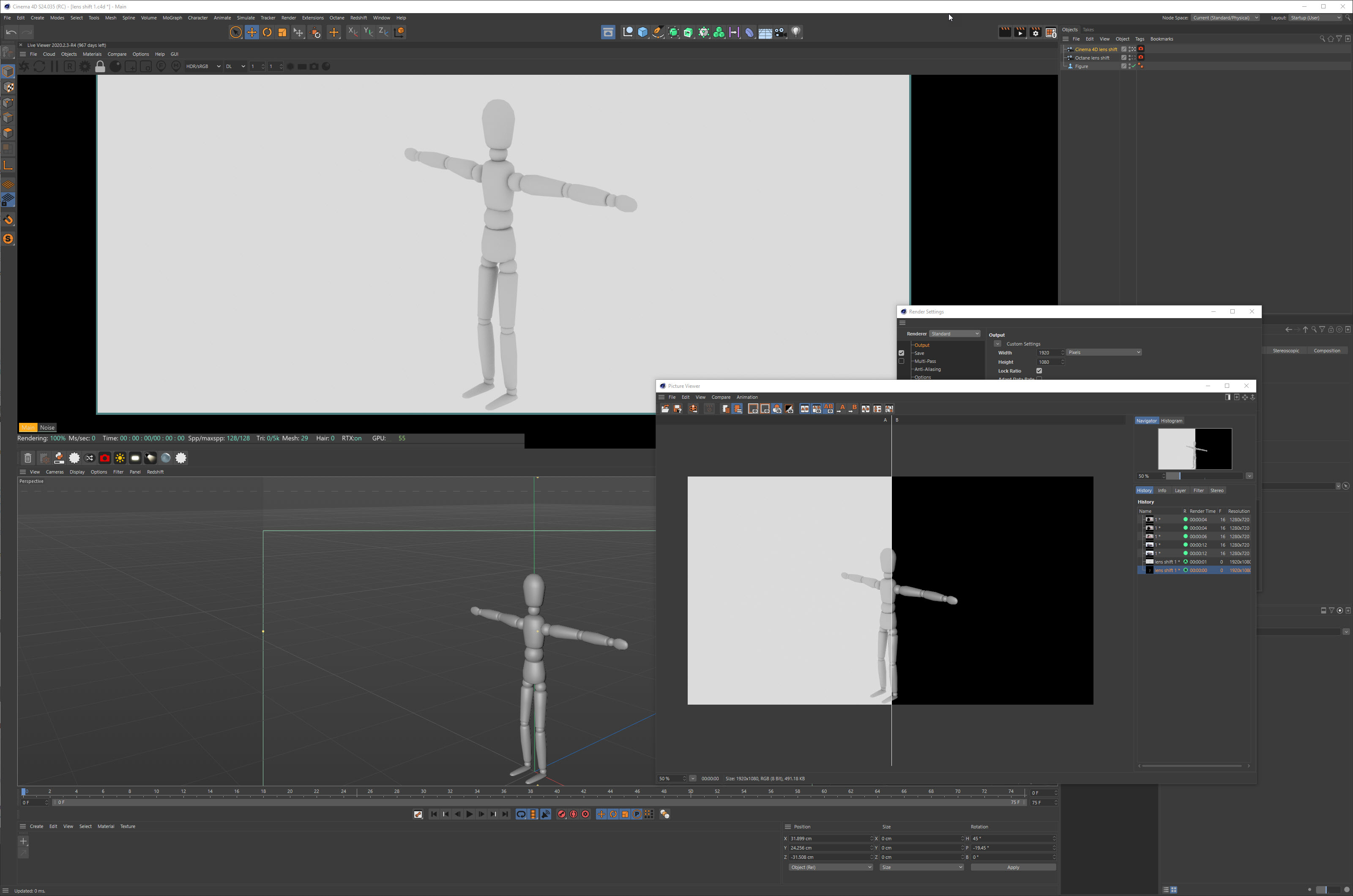 Octane lens shift shows incorrect framing in live view