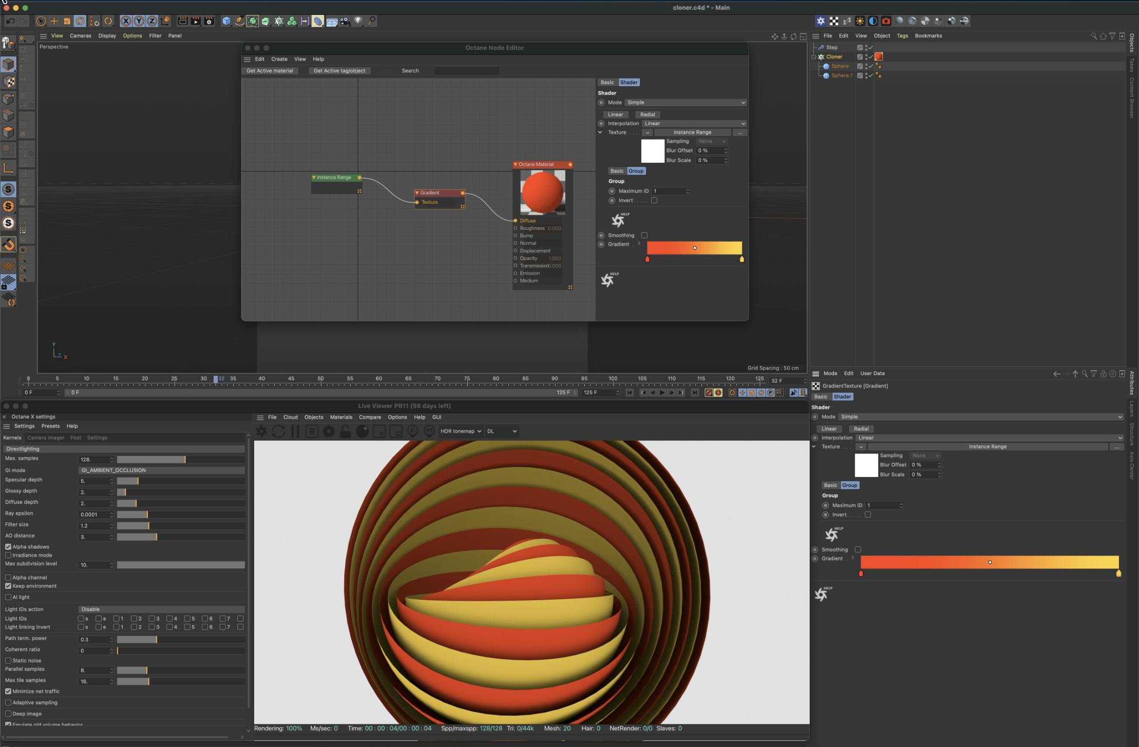 I have 2 hemispheres in a cloner set to Blend clone mode. I want to get Octane to alternate the colour of each clone so that it goes black,white,black,white etc...