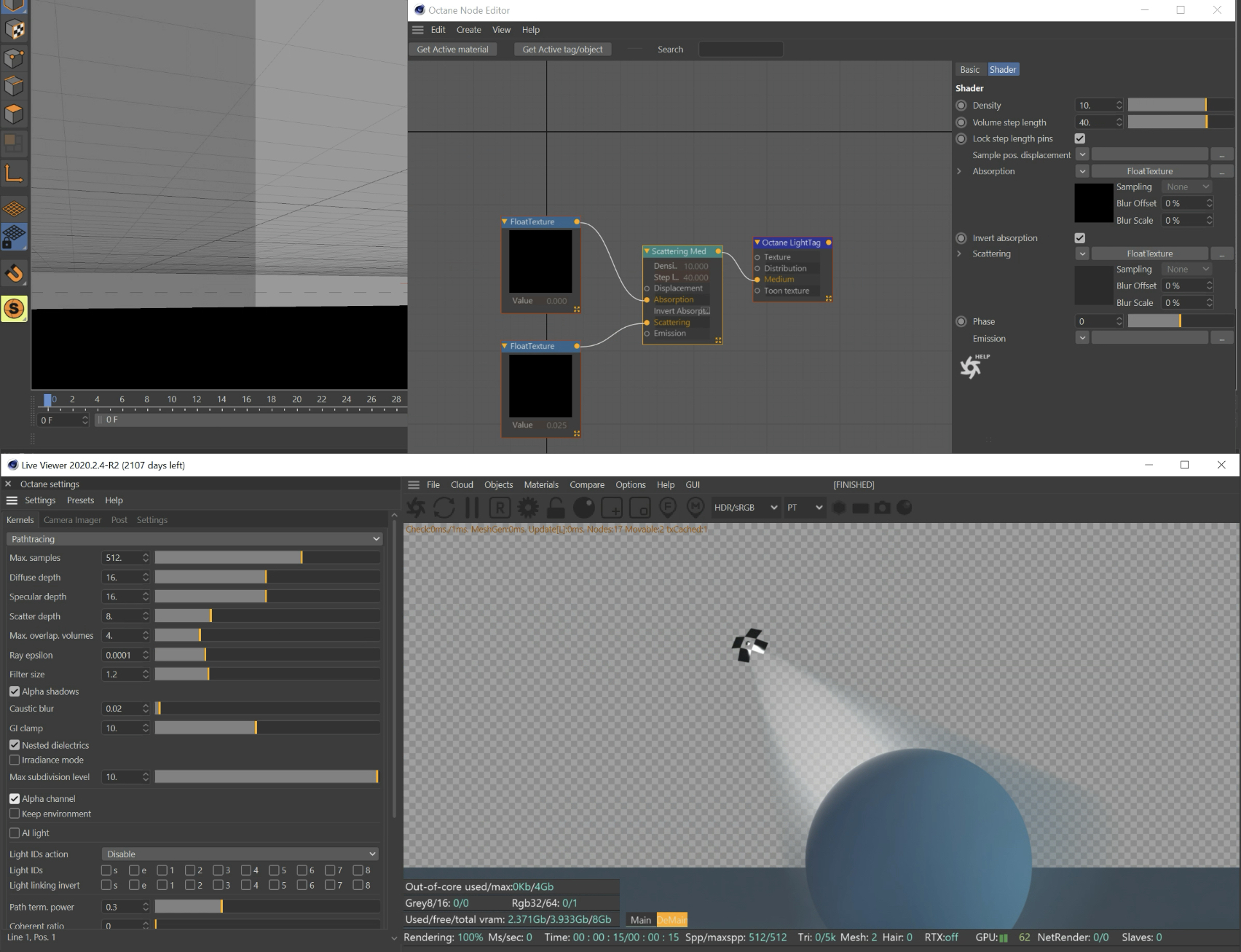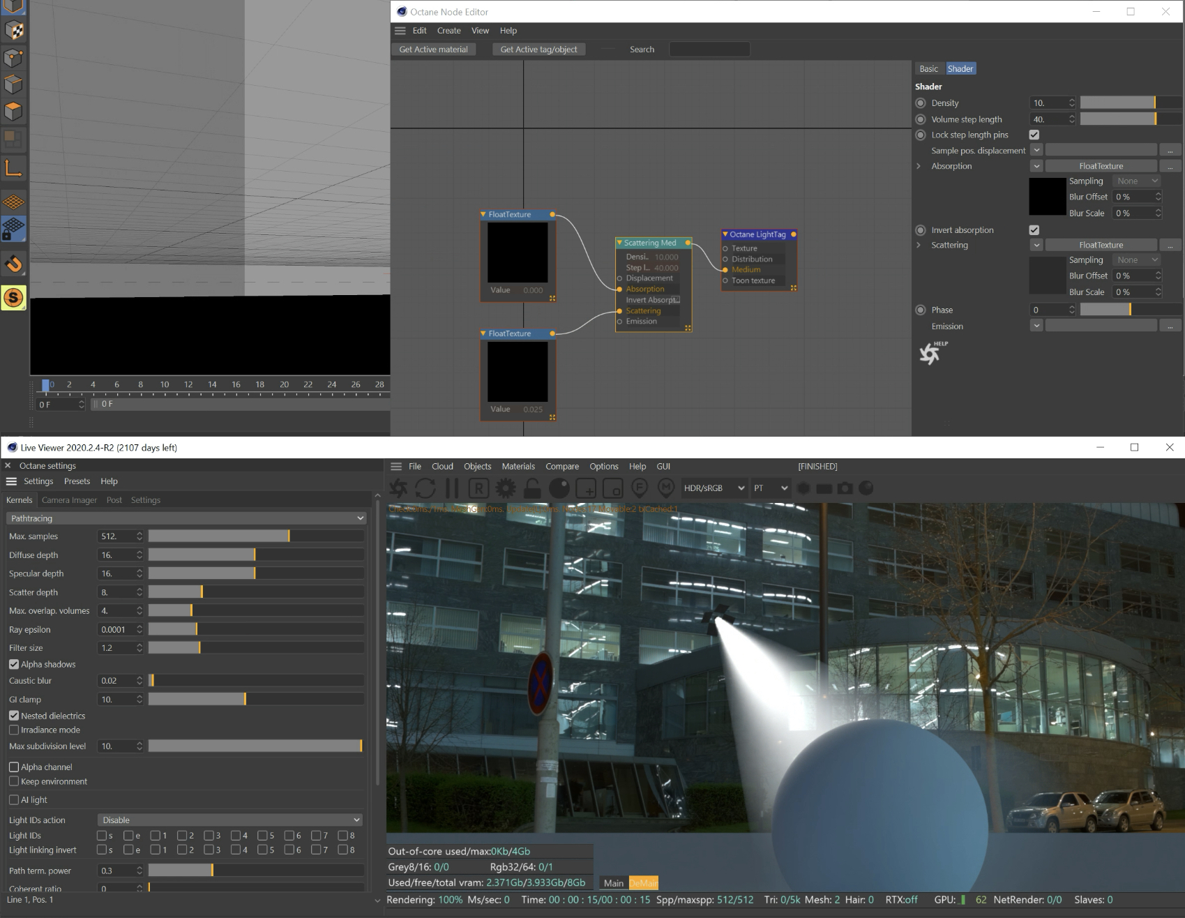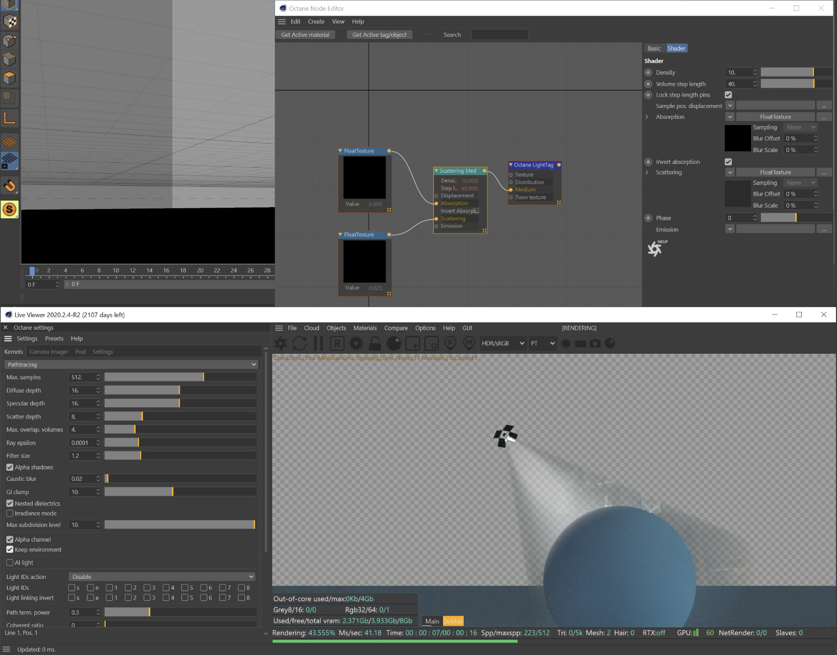I'm trying to use the octane spotlight with an alpha channel and open exr files. The edges of the volume are dark, as opposed to more transparent on the alpha channel. No effect when I change alpha to straight in C4D render settings.