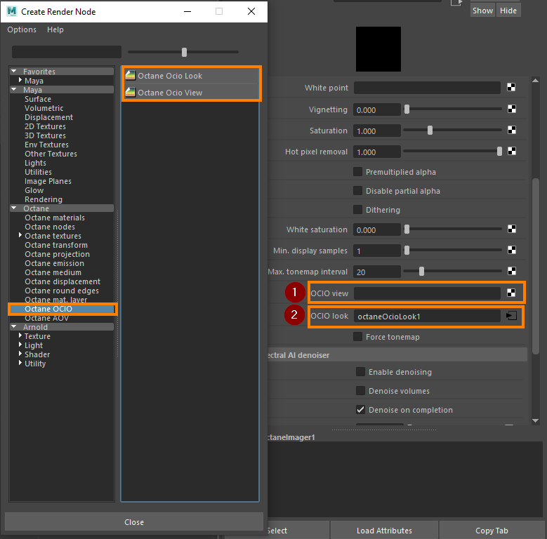 - In the imager; There are Ocio look and Ocio view, but I have not managed to connect it well (I guess, because I do not see the desired result)...