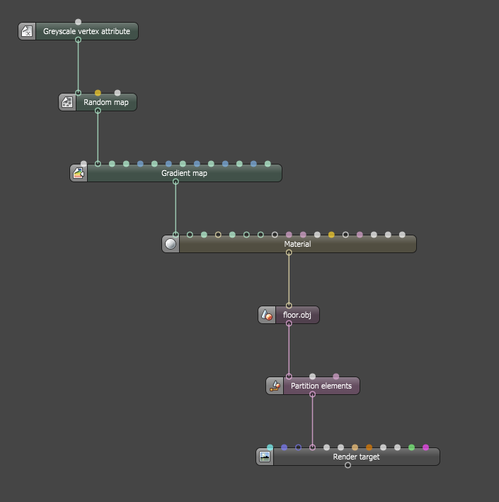 4.2 Add a Random map texture node (If you don't have this node an OSL version is provided below.). Plug the Greyscale vertex attribute node into it and set the Noise function to Hash.