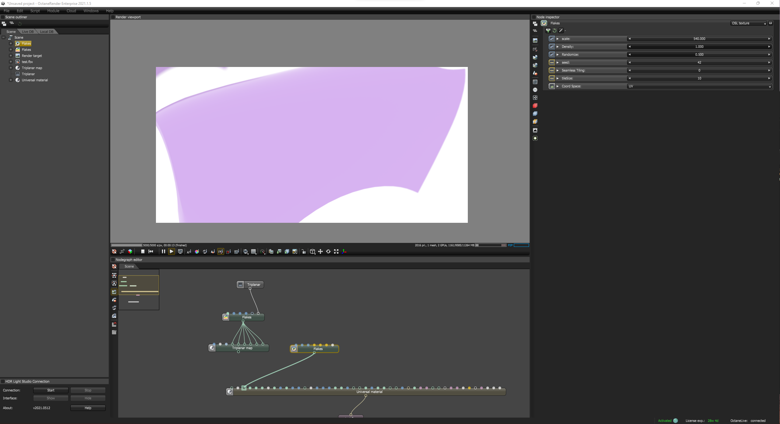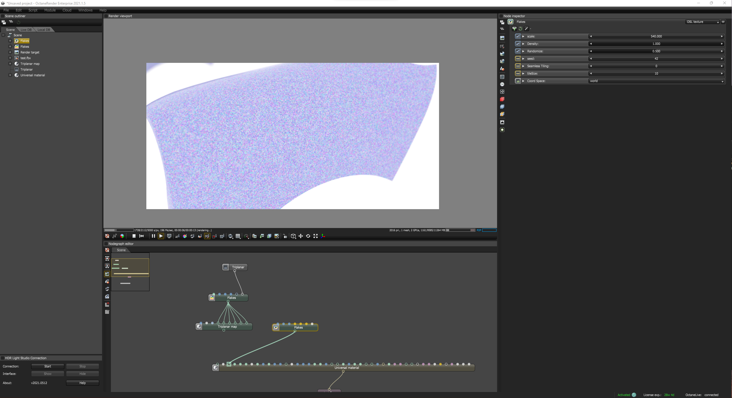 The re-purposed Chaos Group flakes map that comes built into Octane has a projection pin that was added here:
