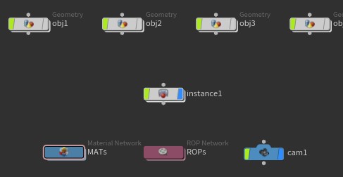In the /obj root you will find 2 subnets that contain the different examples: