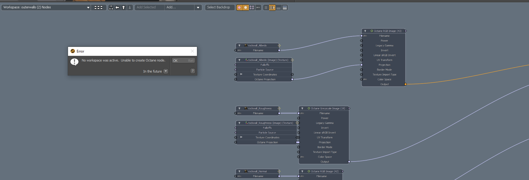 I have a project with a lot of materials, many octane overrides, and I am getting a weird error when I try to edit the schematic of a few of the overrides - it says "no workspace is active. Unable to create Octane node." most of the materials do not have this error and I can edit them as normal- I suspect this is a small thing - is there a simple way to get it to work?
