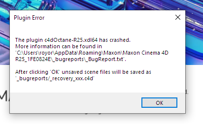 I did all of this. I've installed C4d R25.117. Inside there isn't the named plugins folder so I've created one. If I try to extract the octane plugin zip file inside, I receive the first error message. SO I've extracted the Octane zip file on the desktop and copied this folder inside the plugins folder of c4d. I've received the second alert message but I click on continue and I can copy these files. Deleted the files of other releases, but when I start C4D it crash at 31%.