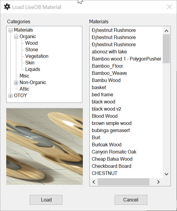 I cannot replicate this error. That LiveDb material appears as follows for me: I wonder if the LiveDb thumbnails have been cached at the wrong resolution? You could try deleting all the folders and files in C:\Users\[username]\AppData\Local\OctaneRender\cache