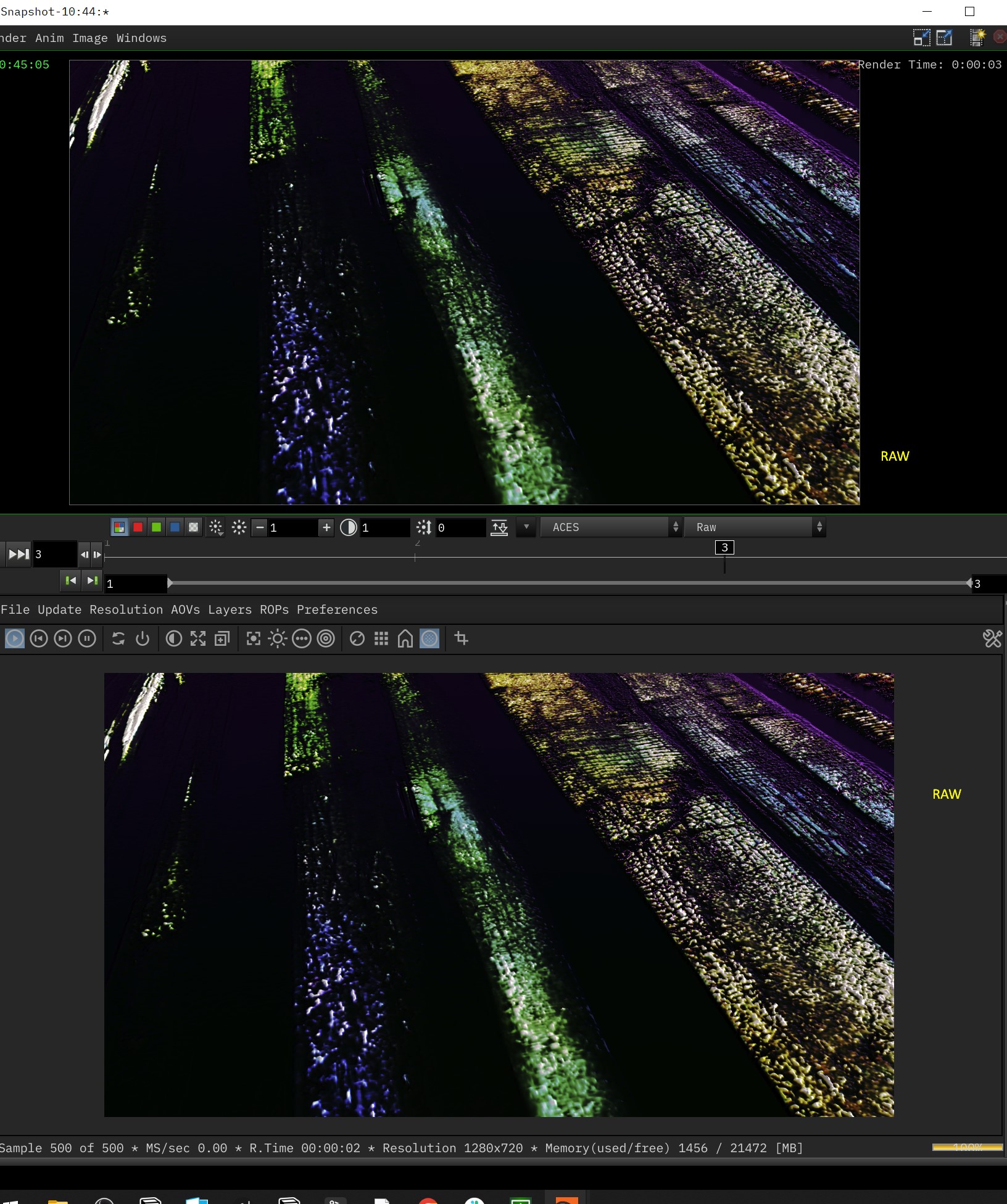 When a still is saved to "Mplay Snapshot" from Qt5, the color visibly changes. Here's screenshots where both Octane and Mplay are set to ACES sRGB, ACES REC2020 and ACES RAW.