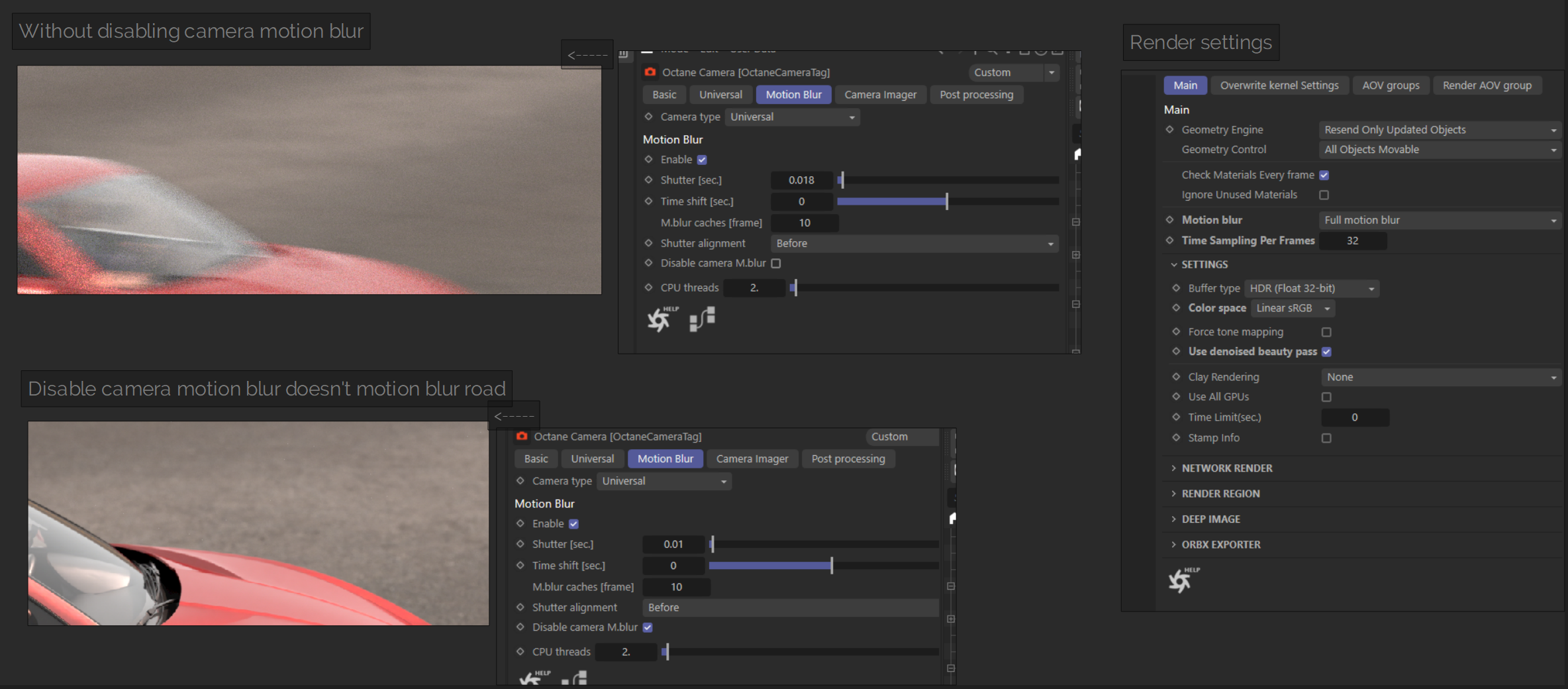 But I have to disable motion blur on the camera otherwise the entire scene blurs including the car.