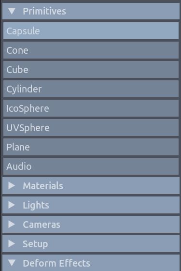 Audio Support From the Primitives menu is now possible to load an Audio File (in MP3 or Wav format) that can be used as reference for project involving Audio-to-animation synchronization.