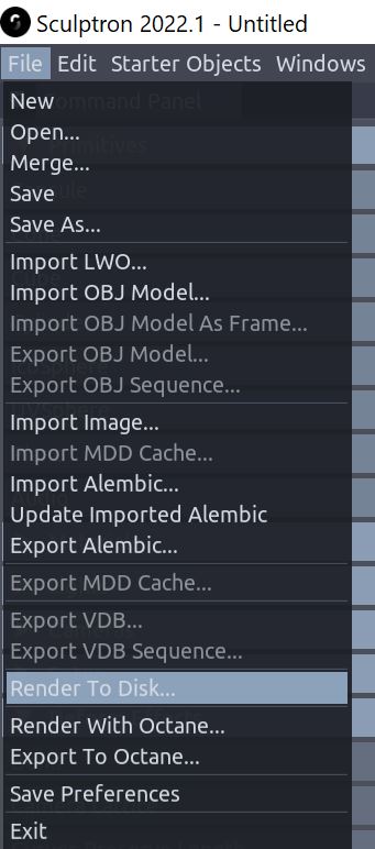 Render to Disk and Render With Octane The Render to Disk option allows to generate an animated preview of the current scene.