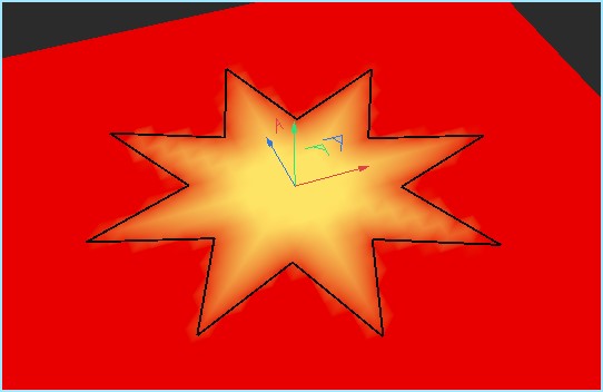 Next way is to use UV map created by cutting main ground polygon using Knife by splines ( converted from objects outlines ). These polygon islands in UV map mode can be colored by white color and creating low-res blurred image using Cinema's BodyPaint can be driven in Octane material by Gradient node to make distance from them.