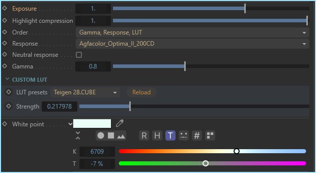 Camera Responses, Lut's, Exposure, Gamma, White Point magic all inside Octane :