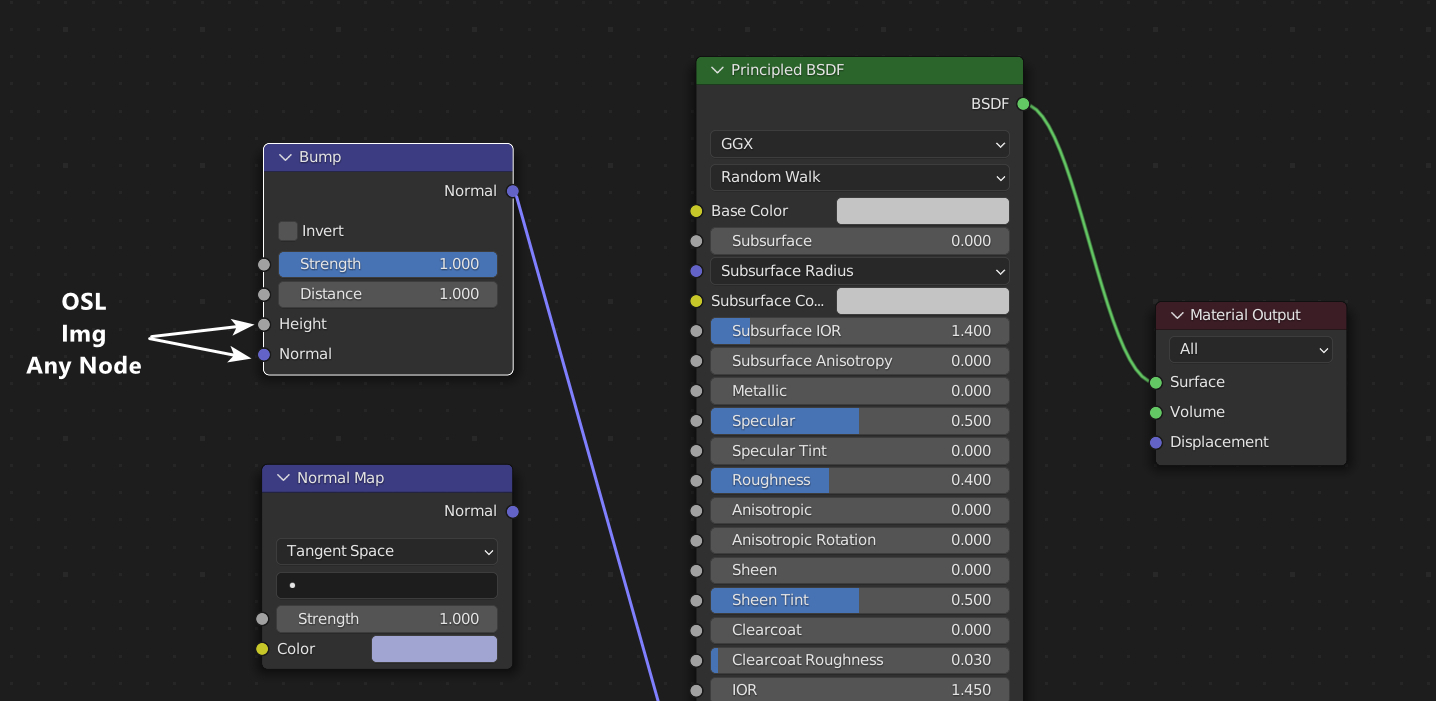 The snapshot shows a Blender material, can you explain what you want to do in the context of an Octane material? Typically this would be a texture input in Octane so you can already feed it OSL, images and simple vectors (via "Float3 to color"). Or are you looking to feed a texture into a vector value? which one?eyeonestudio wrote:Normal Vector Node...