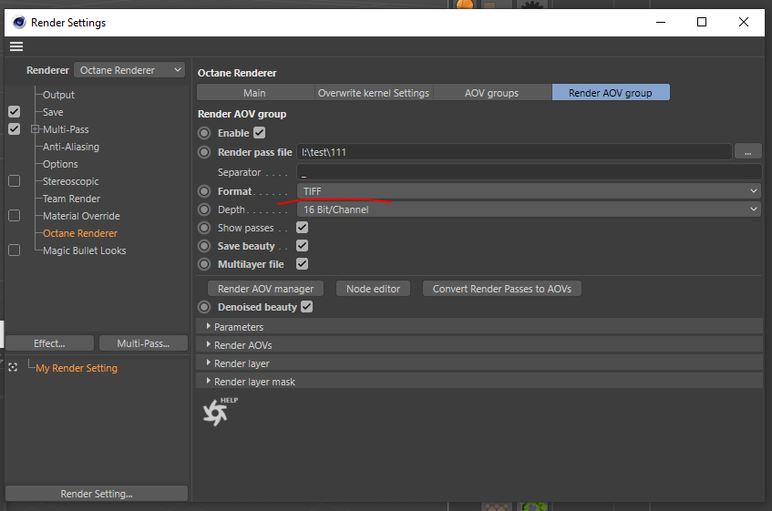 If I choose tiff or png in this place, then octane simply does not save anything.