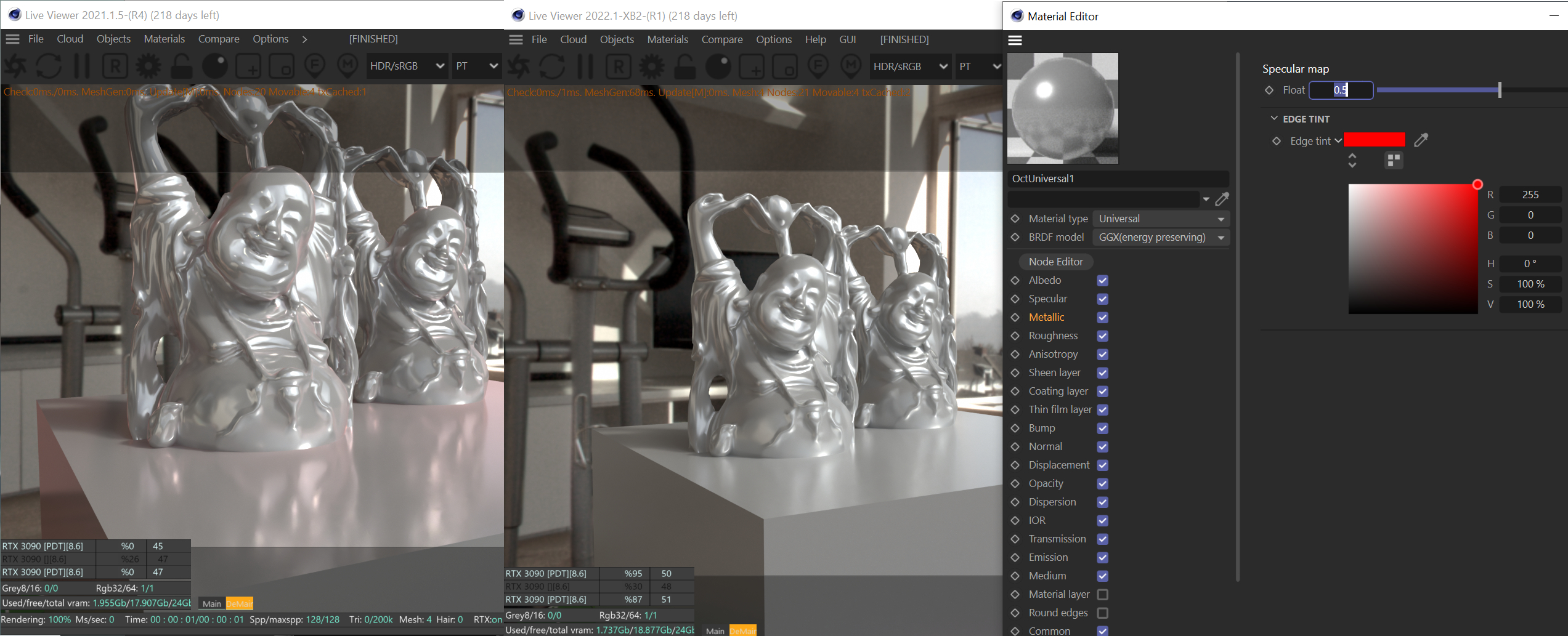 SSmolak wrote:This build is still not compatible with latest NVidia Studio drivers 516.59 - connecting, reconnecting Image Texture nodes ( procedural ones too ) or changing Mix value in material node cause huge CPU delay compared to previous Studio drivers. Live Viewer is locked for 5-8 seconds. Even disabling nodes cause delays.
