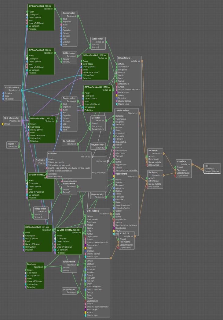 • When I apply the template from the presets, I have the Transmission/Translucency map applied, and only one of the Specular maps, but not both. None of the diffuse, opacity, bump maps are applied. The normal map remains the default and is not unset. (see attachment Face_from_preset.JPG)