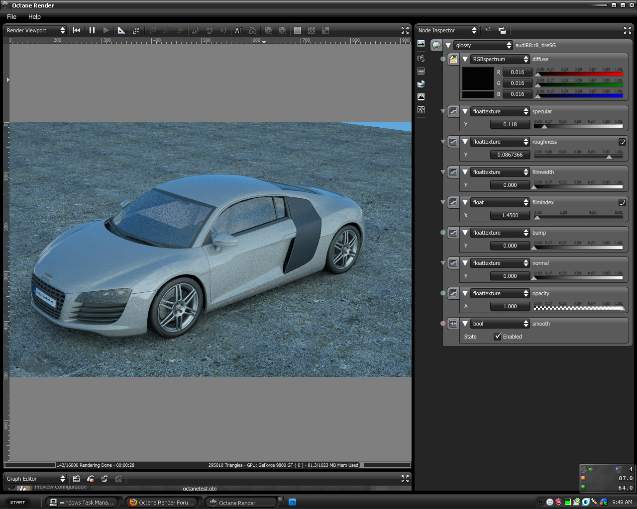 i used the Audi r8 modeled in the past, and i decided to do some test renders in this octane renderer and the results are great