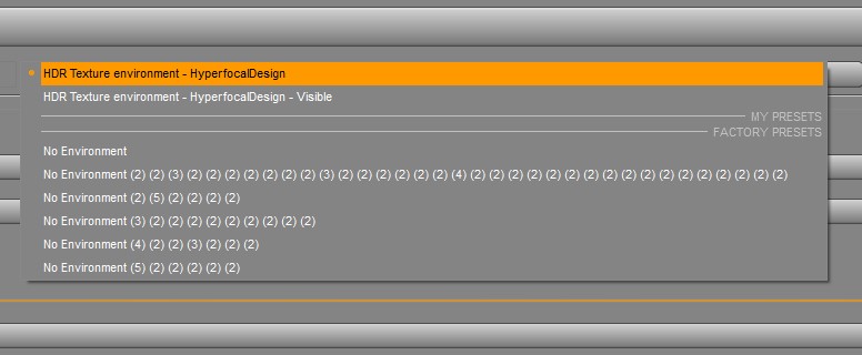 Highlighting the current environment is a great idea, I'll add that to my list of improvements.rajib wrote:ii) Also in the above Image, the name in the drop down HDR Texture Environment - HyperfocalDesign (2) (2) (2) (2)... is not listed in the deletion list with same name. One of the HDR Texture Environment - HyperfocalDesign in the list refers to it. Making it difficult to figure out which one is the current one. Can the current one be made bold or italics in the list so that it is not deleted by accident or at least it allows us to see which one is the current one as the name does not seem to match up.