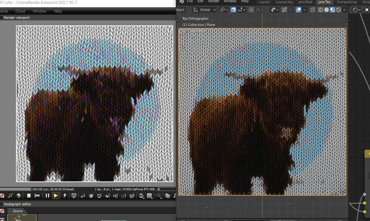 I'm not a C4D user, but that "knitted materials" tutorial looked really cool so I followed along in Octane Standalone (I stopped at about the 12.5 minute mark).