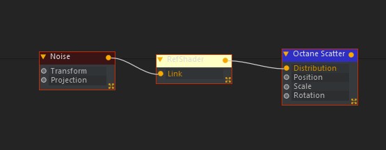 I noticed that RefShader doesn't work inside Scatter nodes. It correctly import values from reference noise node from another Octane Scatter object but unfortunately it do nothing - just like disconnected from node network :