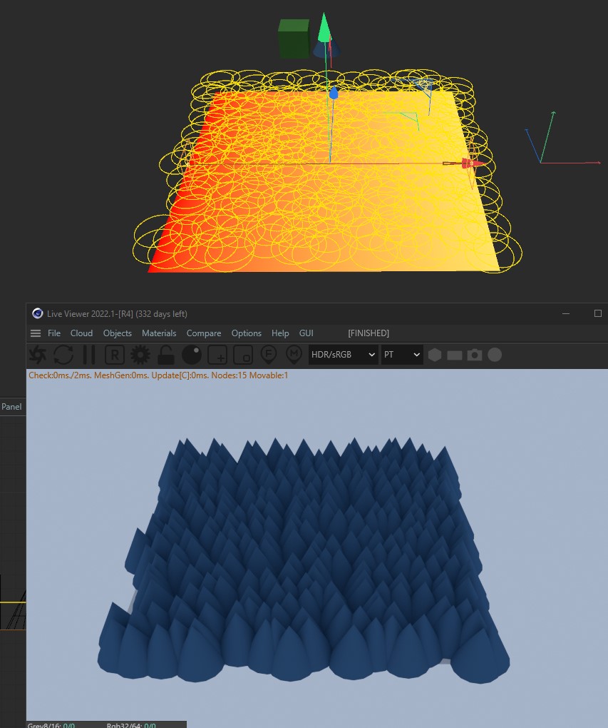 First example of refshader - Scatter 2 has connected distribution noise using RefShader from Scatter 1 but it doesn't work. C4D Gradient node probably can't be connected to RefShader :aoktar wrote:
