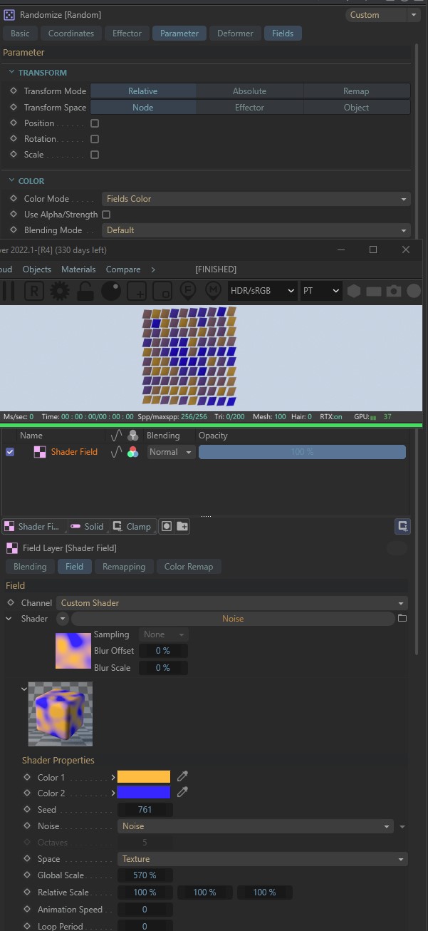 Few objects under Fracture object with some other effectors, material applied to fracture object