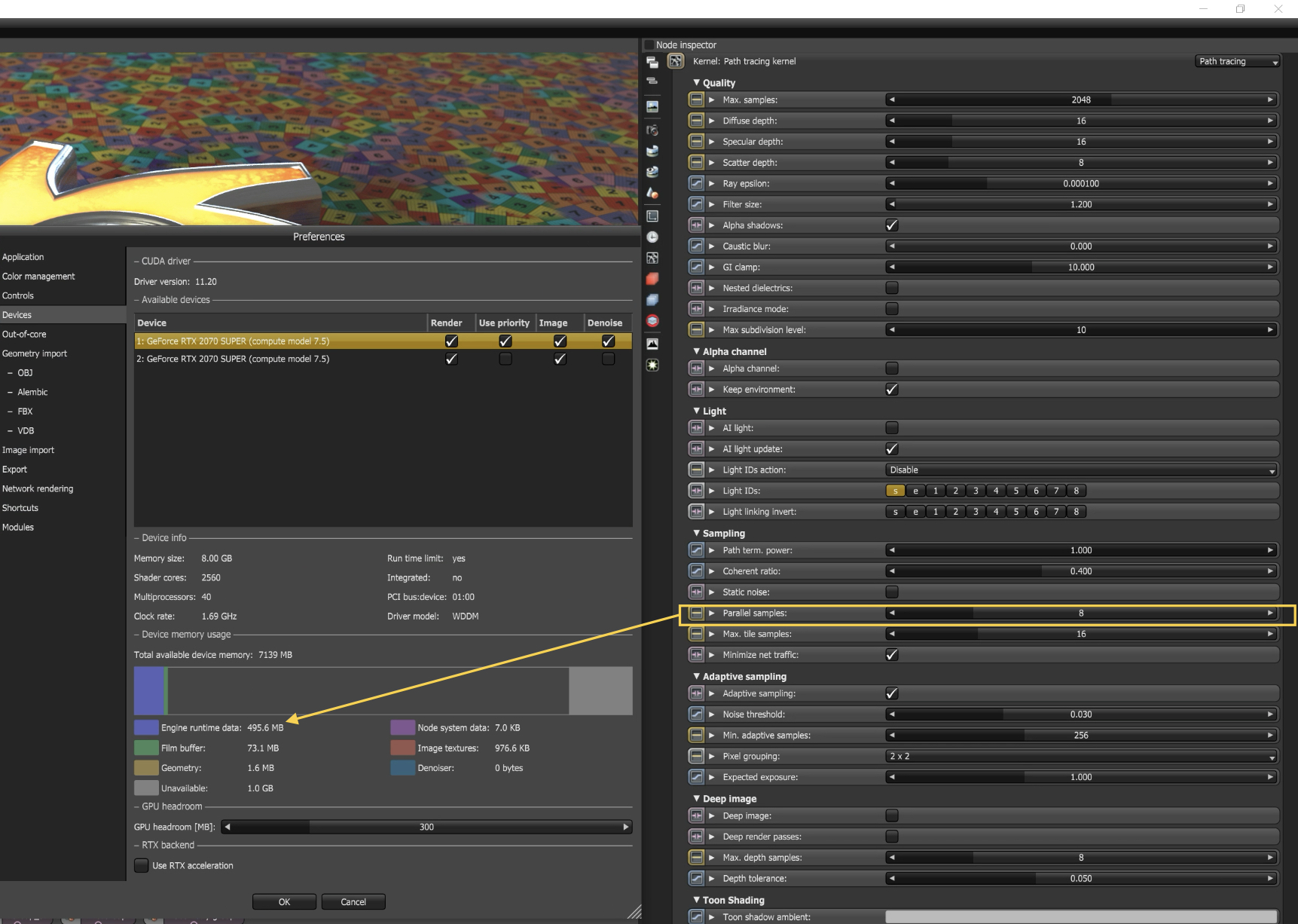 No matter the scene complexity when rendering 1.9gb of my vram will be allocated to "engine runtime data"