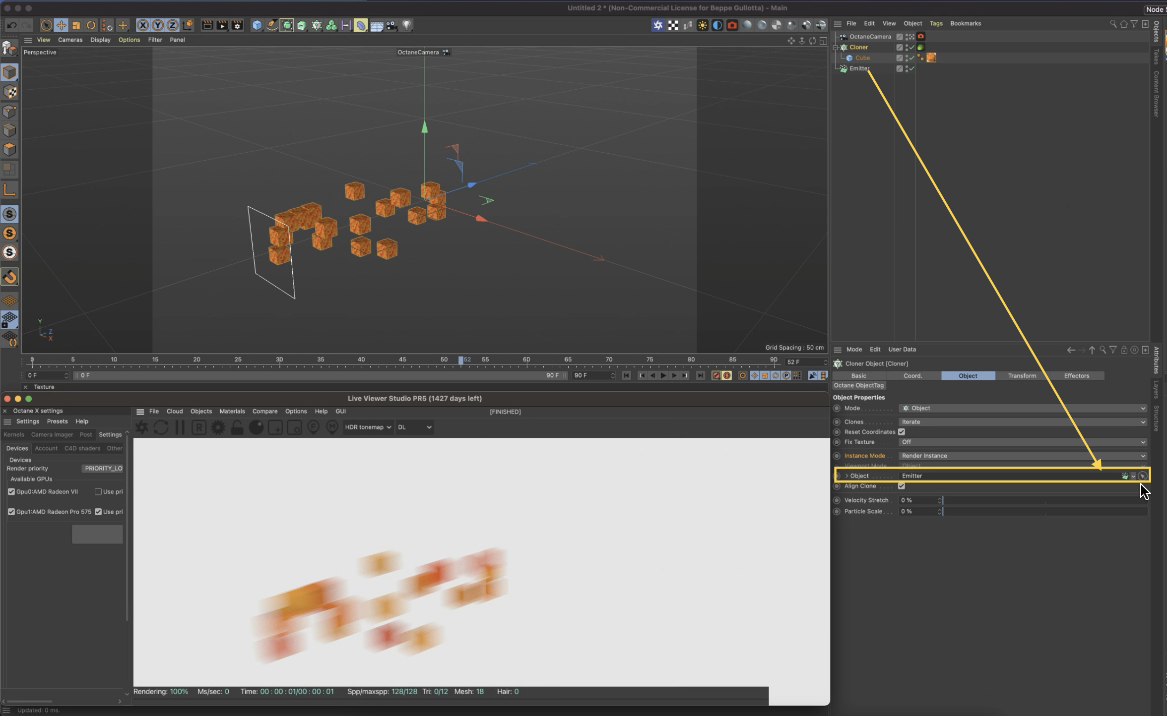 but putting the emitter as cloner object solve the problem. so its related to how octane reading the emitter particle data?