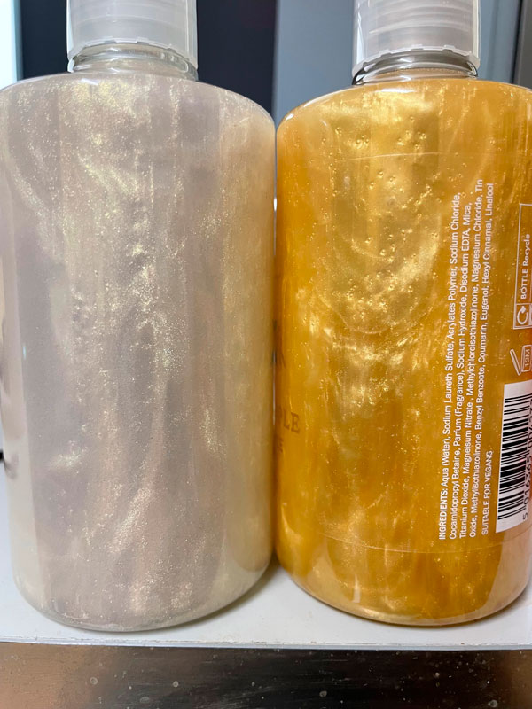 I'm rendering some soap products and need to create a couple of swirly, glittery viscous liquid materials.