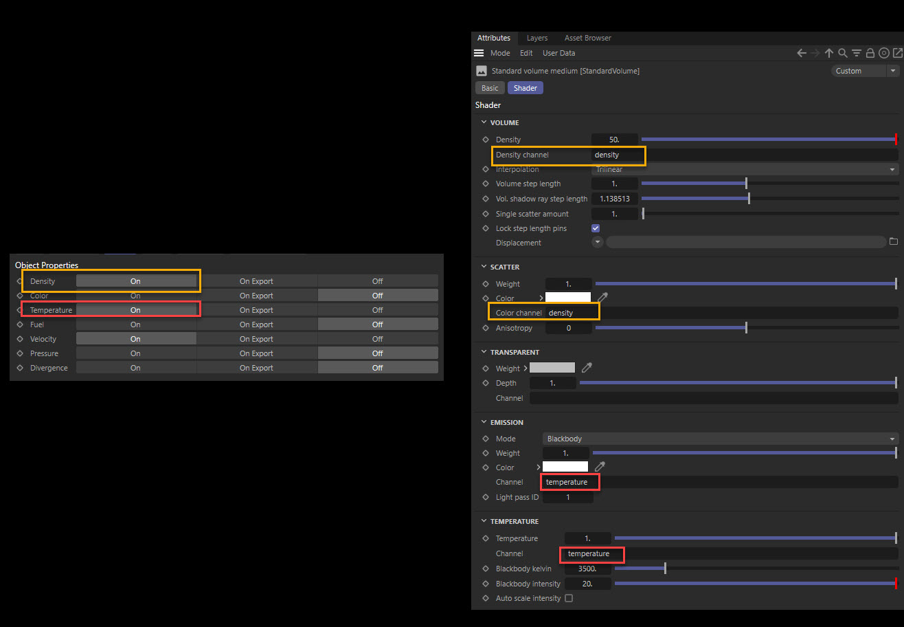 Trick: Let the Pyro calculated a few frames then put the tag. It will create and adjust the Standard Volume for you as your calculated channels. It will find for channel names by automaticallyleave2 wrote:I did try to use the Object tag method, but the documentation links to a dead page, and I wasn't able to achieve anything other than a completely opaque black blob with no physical characteristics of any kind.